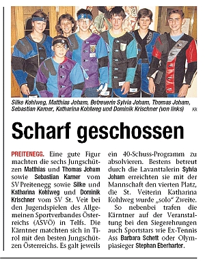 Eine besondere Auslese aus Kärnten durfte zu den Jugendspielen nach Telfs reisen und dort Wettkampfluft schnuppern.