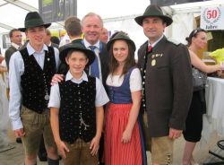 Die Preitenegger Jungschützen Thomas und Matthias Joham und Petra Walzel mit Landeshauptmann Gerhard Dörfler und OSM Gottfried Joham beim 3. Kärntner Landesschützentag in Völkermarkt